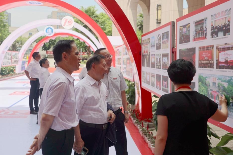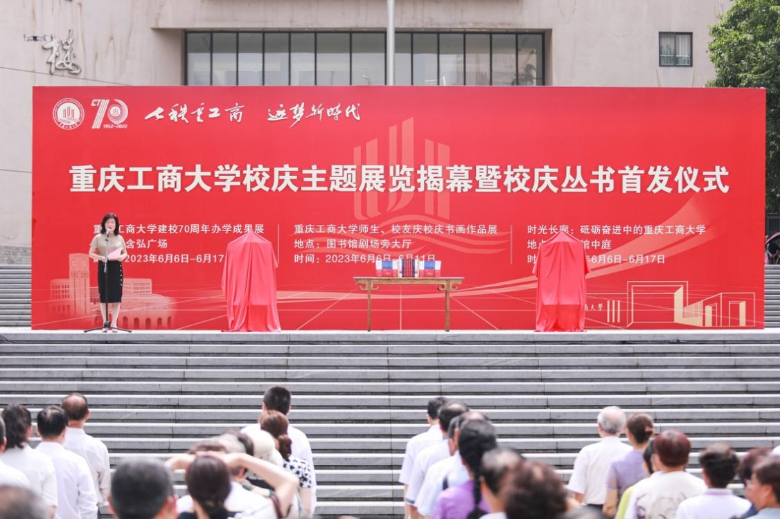 6月6日上午11点,学校在含弘广场隆重举行“七秩重工商 逐梦新时代”校庆主题展览揭幕暨校庆丛书首发仪式。学校党委书记李志雄,校长温涛,党委副书记宋豫,党委常委、副校长陈运超、张波、李国军、赵骅等出席仪式。原重庆商学院党委书记张柏村,原渝州大学校长戴宏民,原重庆工商大学党委书记周希贤,原重庆工商大学校长王崇举,原重庆工商大学副校长廖元和、黄朗和离退休教职工代表受邀参加仪式。此外,学校各二级单位负责人、教职工代表、校友代表和学生代表也参加了仪式。仪式由宋豫主持。